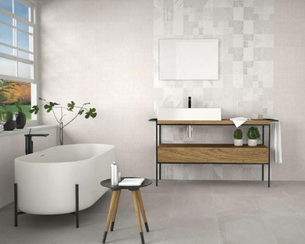 ORIGEN: España FORMATO: 33×90 CM M2 x CAJA: 1.19 M2 PZ. x CAJA: 4 COLOR: Gris Claro TERMINADO: Esmaltado Mate Texturizado USOS: Muro baño/cocina AZULEJO PORCELANICO ACABADO MATE TIPO TEXTIL RECTIFICADO
