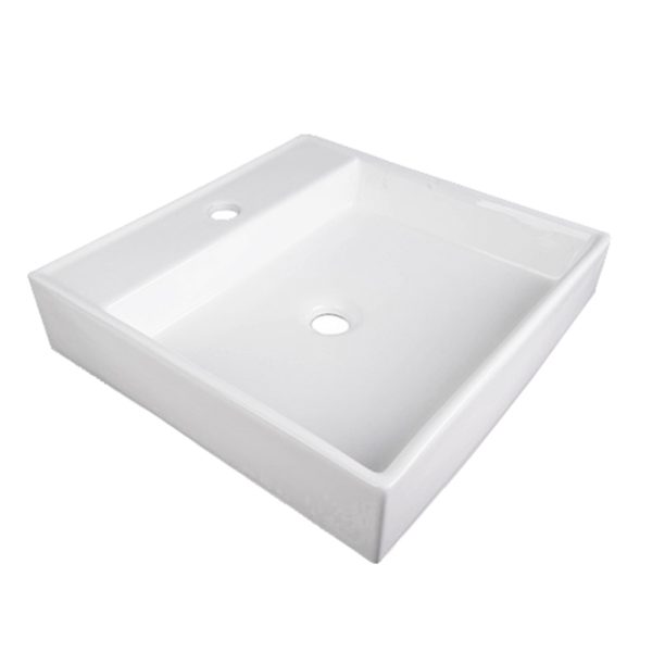 Lavabo cerámico de sobreponer rectangular, para monomando externo