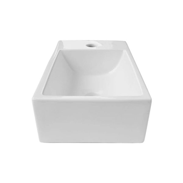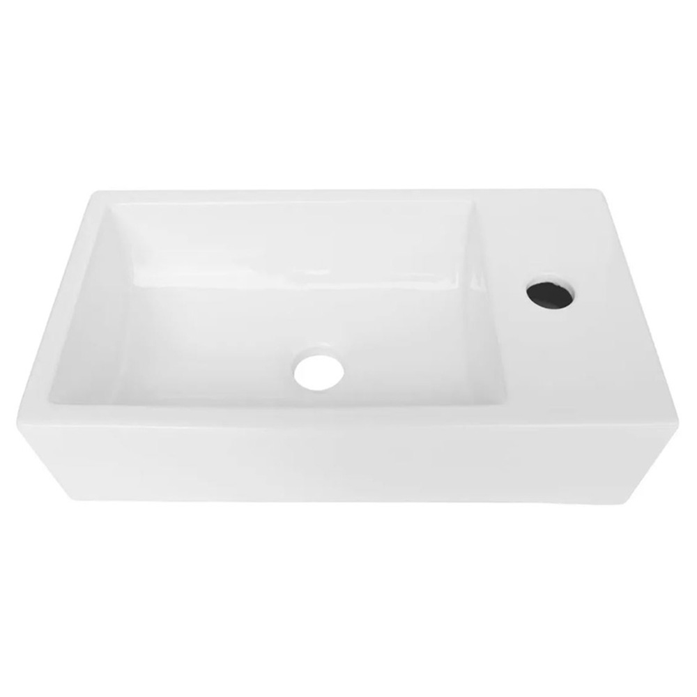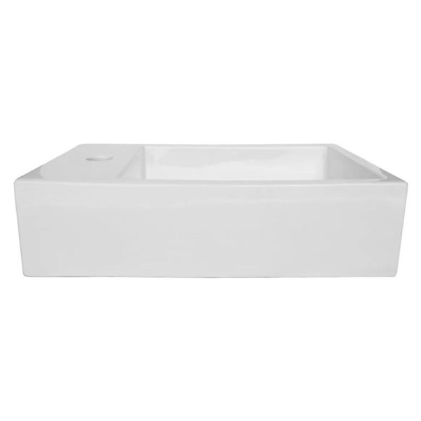 Lavabo cerámico de sobreponer rectangular, con base para monomando MEDIDA: 26 x 46 x 12 cm COLOR: Blanco