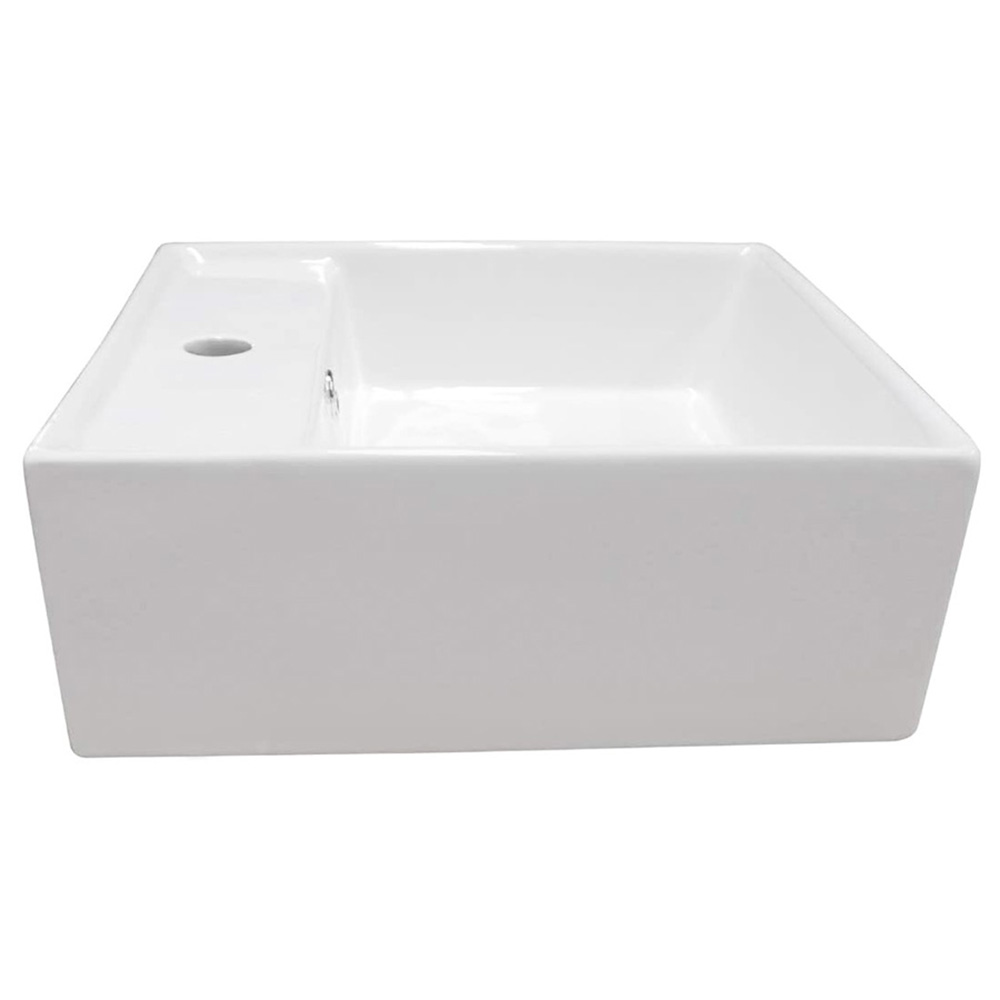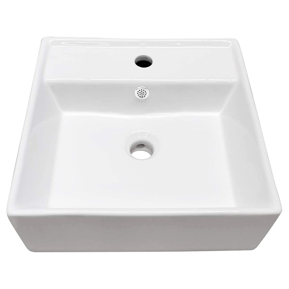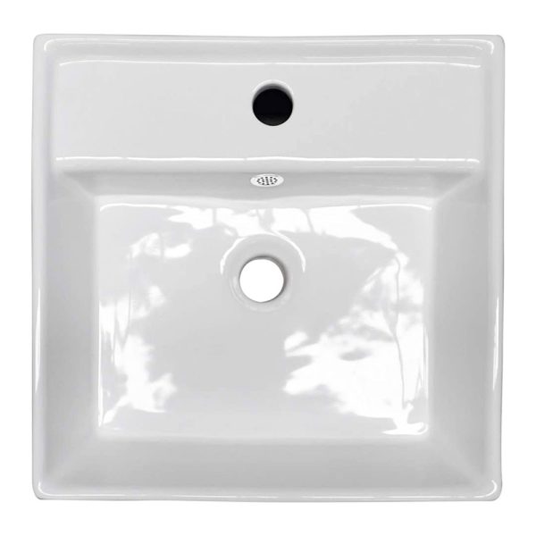 Lavabo cerámico de sobreponer cuadrado, con base para monomando MEDIDA: 41 x 41 x 15 cm COLOR: Blanco
