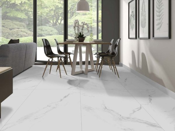 ORIGEN: India FORMATO: 60×120 CM M2 x CAJA: 1.44 M2 PZ. x CAJA: 2 COLOR: Fondo blanco c/ vetas grises TERMINADO: Esmaltado Pulido USOS: Piso/Muro uso interior PISO PORCELANICO ACABADO PULIDO TIPO MARMOL RECTFICADO